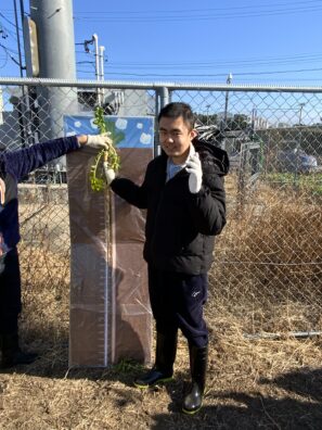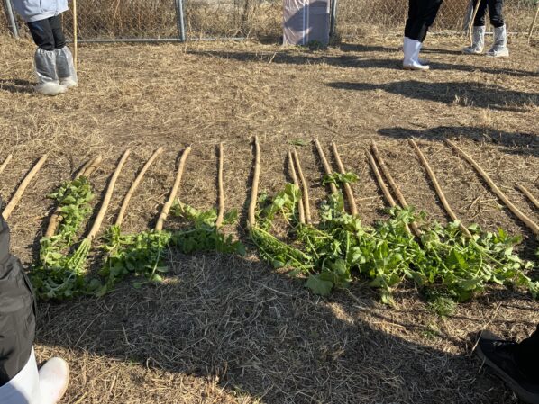 通勤ルートや散歩道で守口大根を見たことや収穫しているところを見たことはあっても、実際に掘ってみることは初めての人ばかり。説明を聞きアドバイスもらいながらみなさん頑張りました(*’ω’*)v
