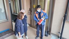 グループホームでも消防署員の方立ち合いで、総合避難訓練を実施して、「いざ」という時に備えています。